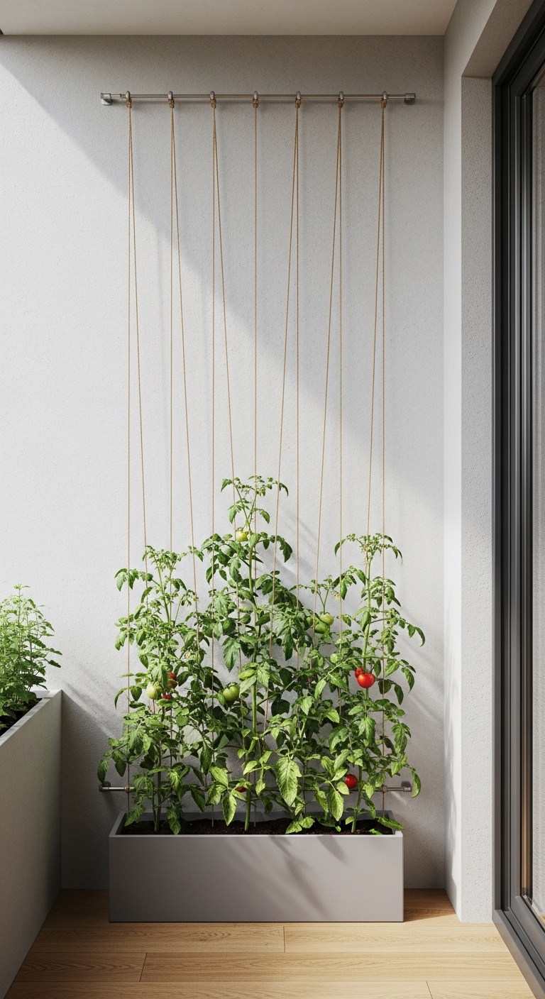 Sometimes the simplest solution is the best one. A string or twine trellis works brilliantly for annual climbing plants, balcony gardens, and anyone who wants maximum flexibility with minimal effort.