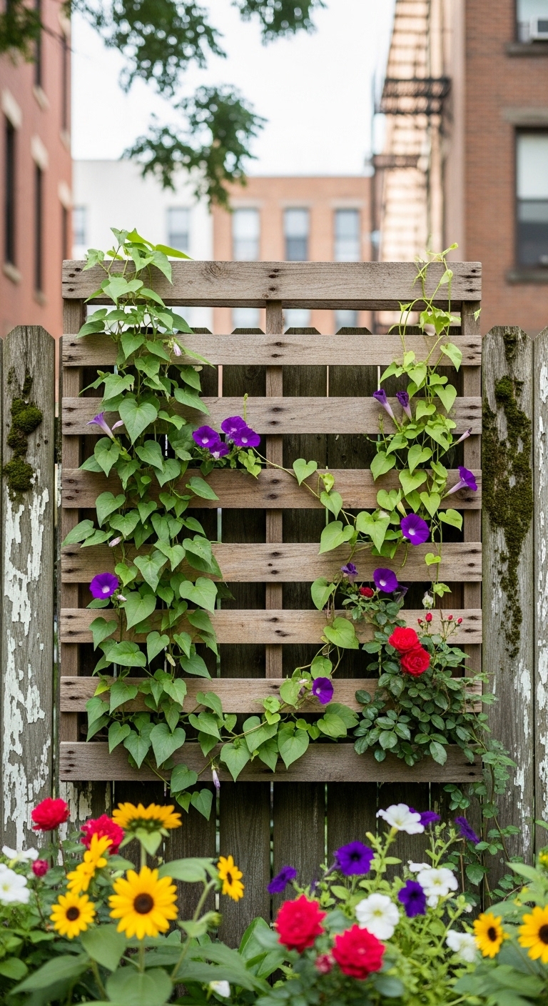 Stand a pallet upright and secure it to a fence post or stake it into the ground. The existing gaps between the slats give your plants the perfect framework to thread through and climb. You can leave it raw and rustic, paint it a bold color, or even attach small pots to the front for a vertical garden effect.