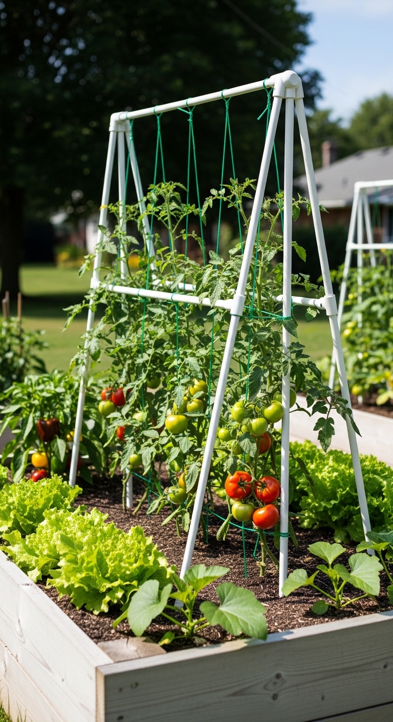 You can get creative with the design: a simple arch, a flat grid panel, or an A-frame structure. Cut PVC pipes to your desired lengths, connect them with standard PVC elbow and T-joints, and you’ve got a custom trellis frame that will literally last for decades.