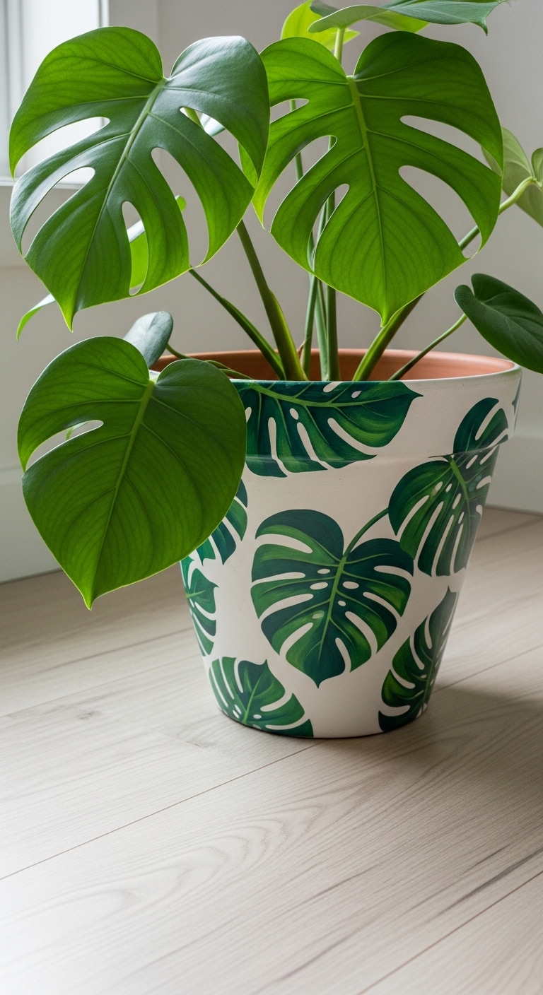Idea 11: Monstera Leaf Hand-Painted Design