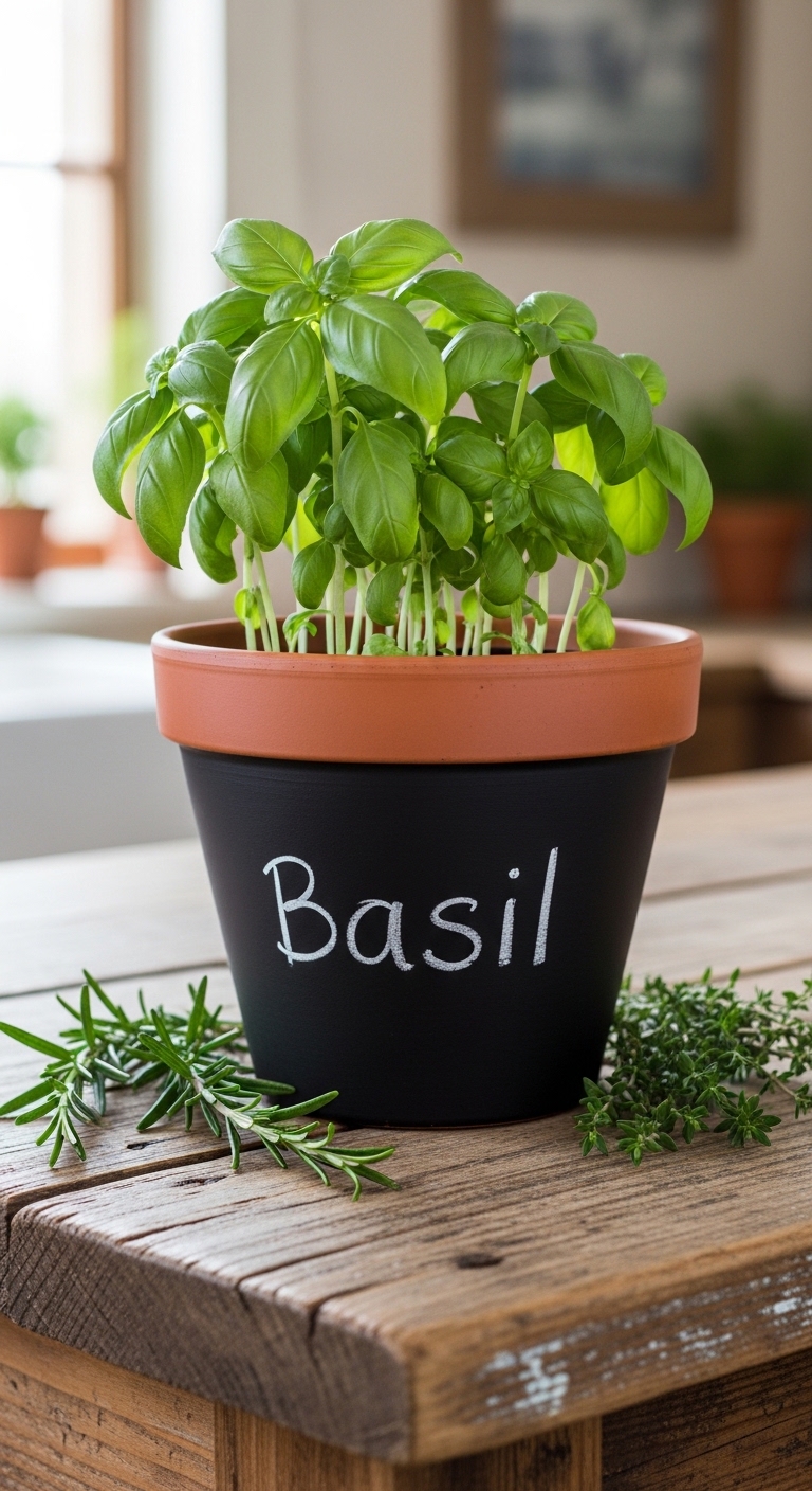 Chalkboard paint is a genius solution for anyone who loves to switch things up often. Paint your pot with two coats of chalkboard paint, let it cure for a couple of days, then write whatever you want on it with chalk — plant names, quotes, dates, little drawings.