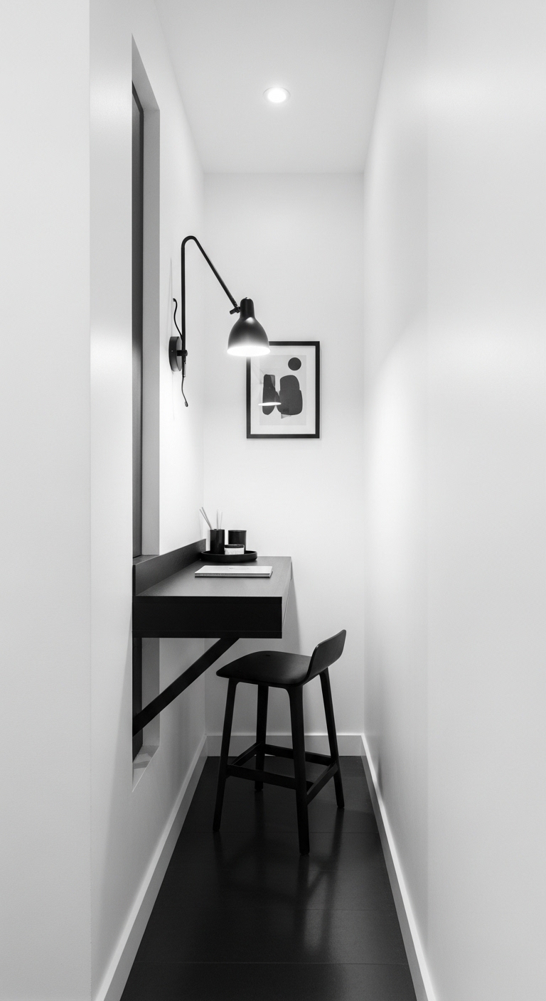 Most hallways have at least one wall that’s doing absolutely nothing. A recessed or floating desk installed here creates a functional study spot without removing any usable living space.