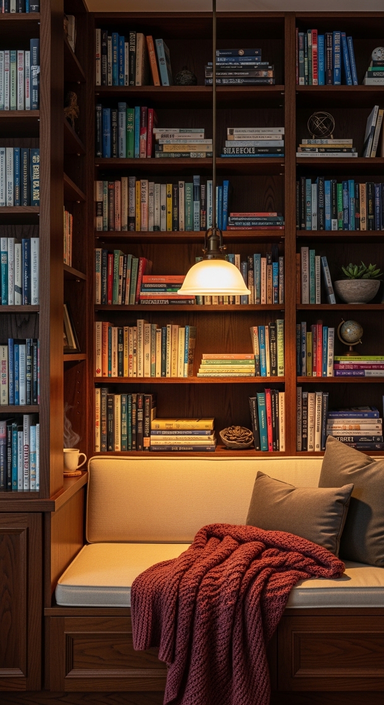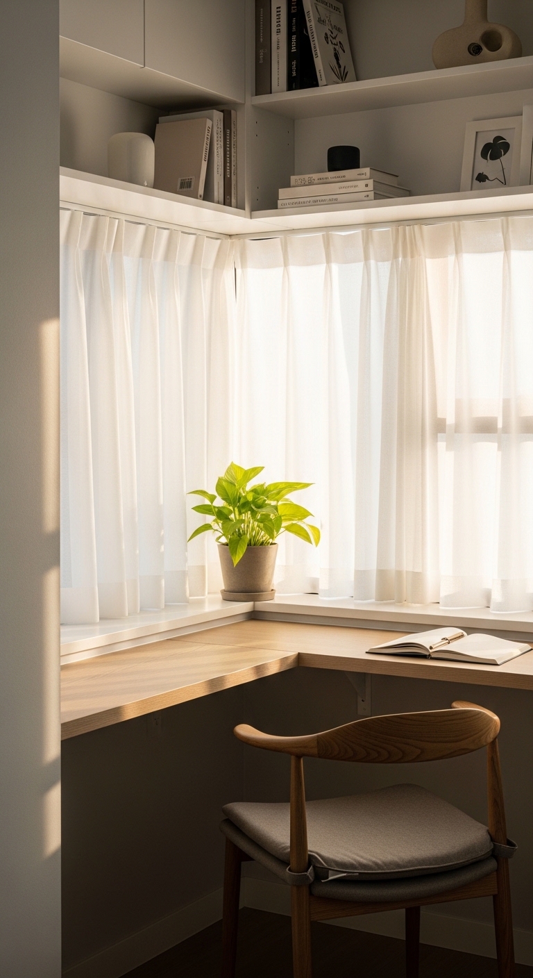 Add a cushioned seat, a pendant lamp overhead, and a small side table for your laptop or notebook. This setup is perfect for readers, writers, and anyone who does deep work that requires quiet immersion.
