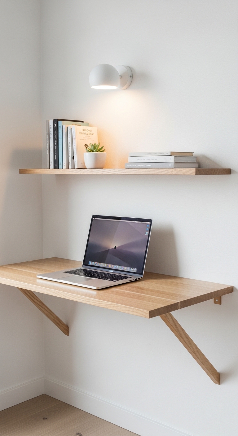 Floating desks are the unsung heroes of small-space design. They attach directly to the wall, take up zero floor space, and look incredibly intentional. You can get them in wood, white-painted MDF, or even glass for a more open feel.