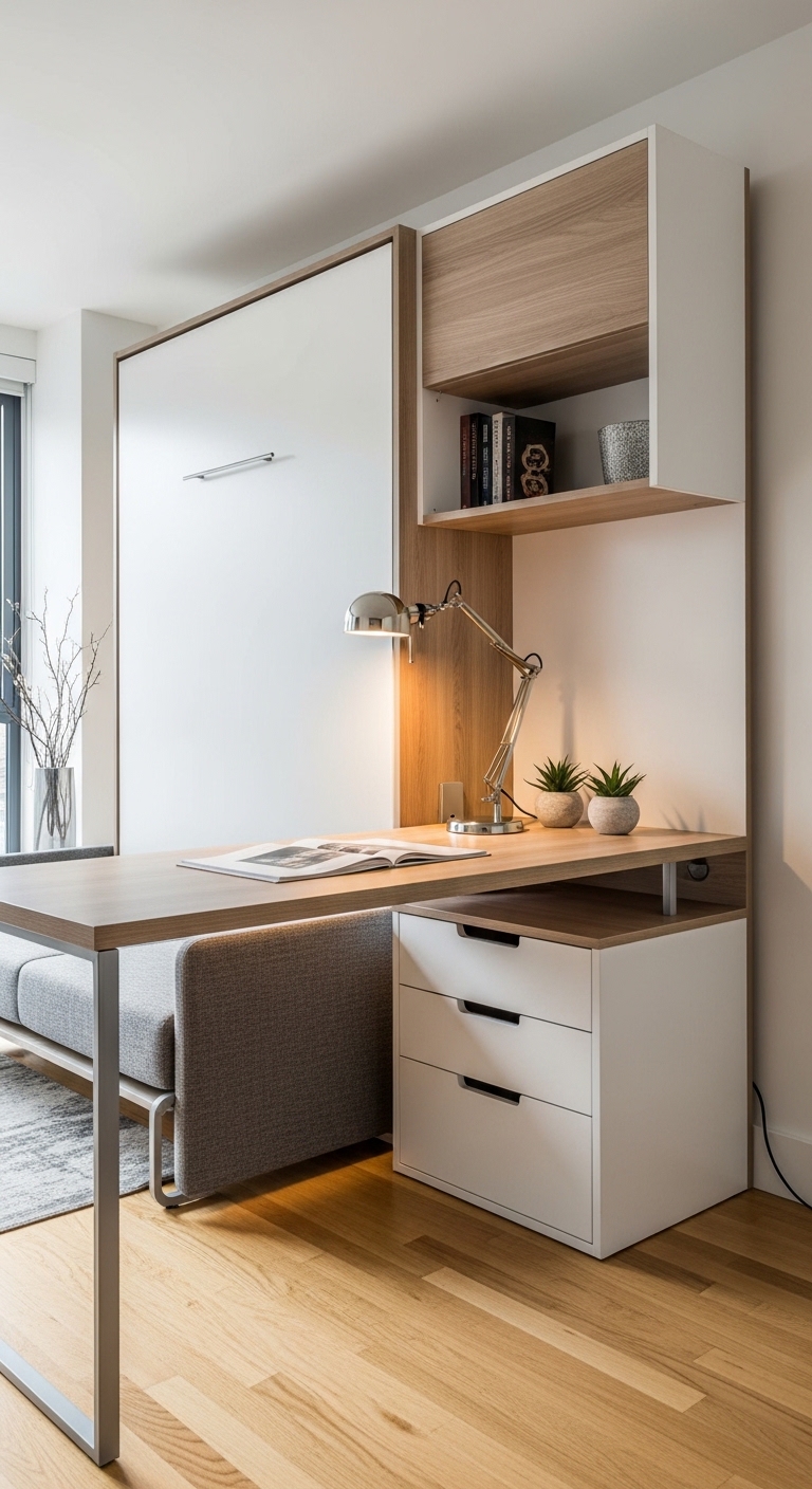 Murphy beds are brilliant, but Murphy bed-desk combos are next level. These integrated units fold the bed up into the wall, revealing a fully functioning desk beneath. Your bedroom becomes your office during the day and flips back into a sleeping space at night.