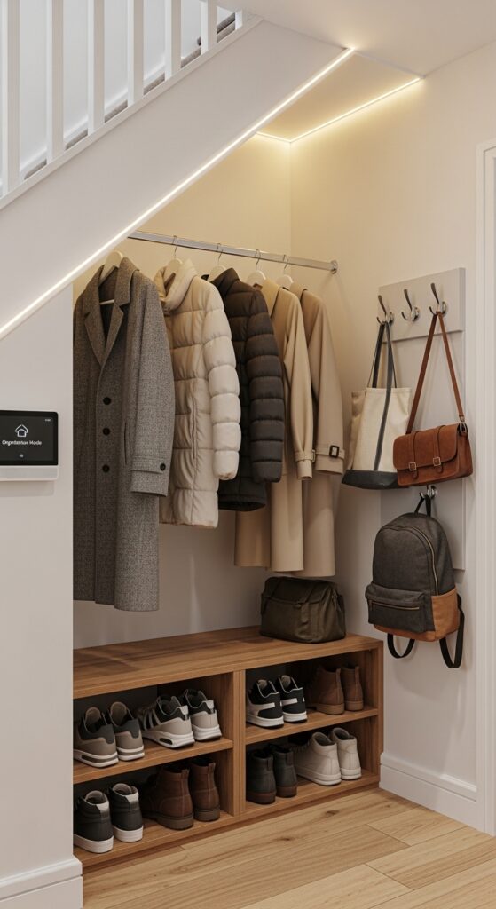 23. Install a Cloakroom Nook Under the Stairs