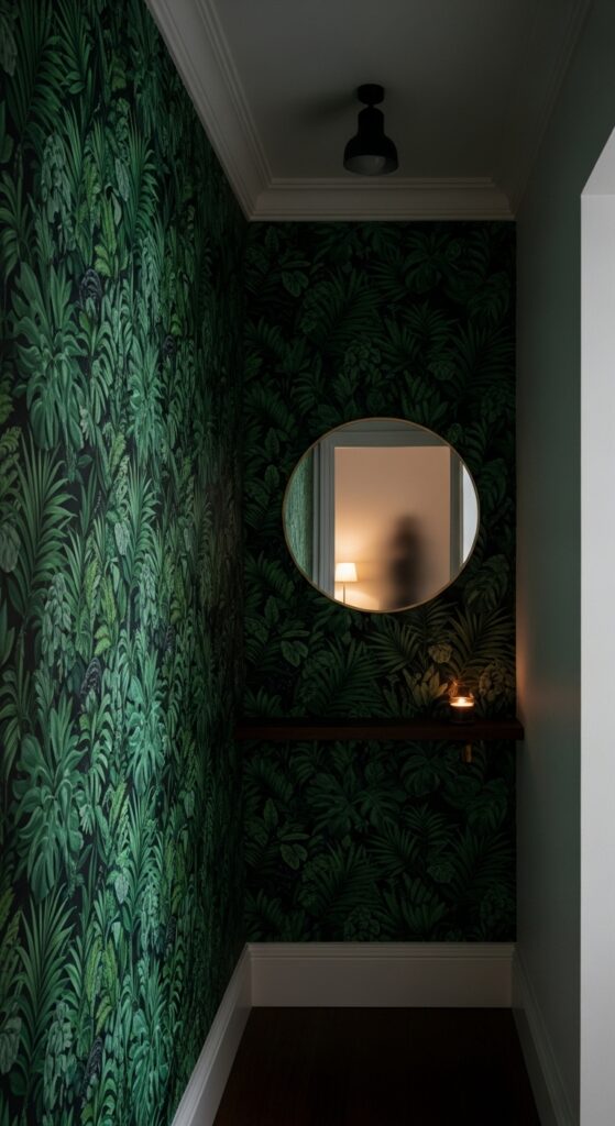 Small spaces can actually handle bold patterns better than large rooms. A dramatic wallpaper on one hallway wall creates a striking focal point and makes the corridor feel intentional rather than forgotten. Think rich jewel tones, botanical prints, or geometric patterns. One wall is all you need.