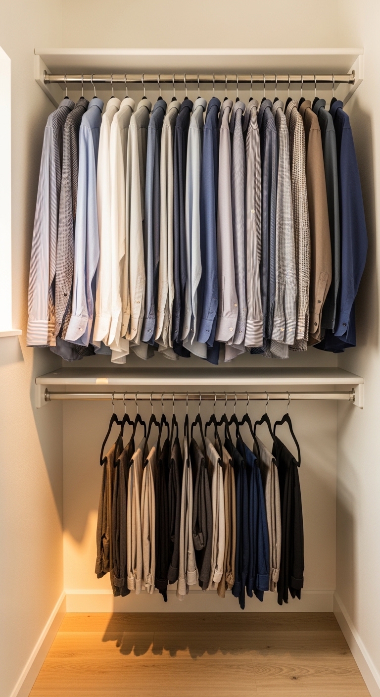 Idea 1: Use Double Hanging Rods to Double Your Clothing Capacity