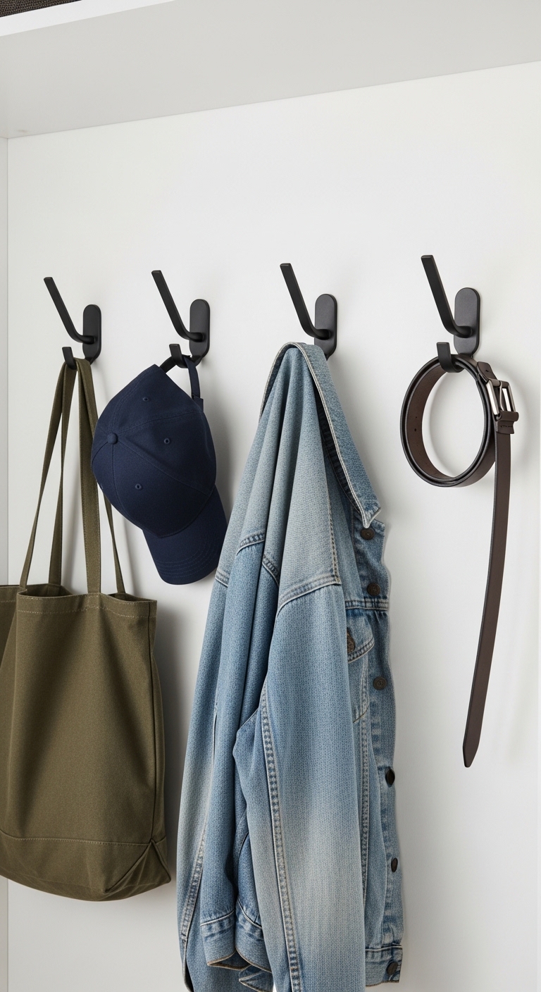 - Assign each hook a category — one for bags, one for tomorrow’s outfit
