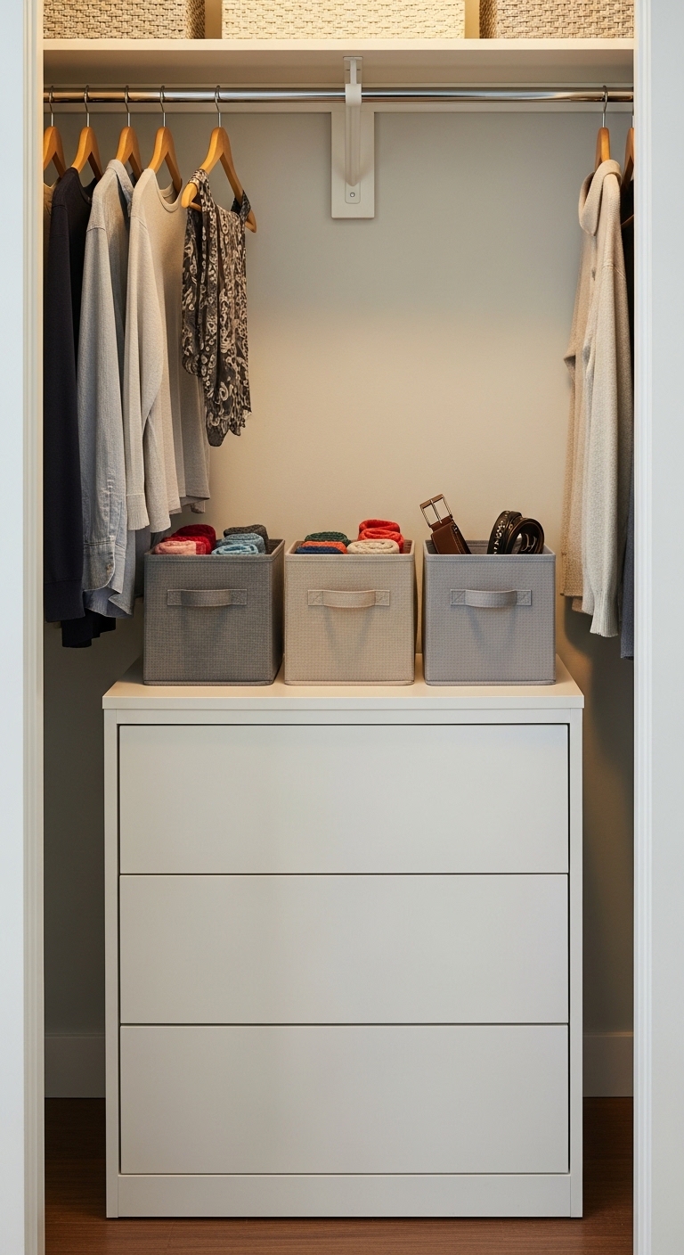 Idea 8: Add a Small Dresser or Cube Organizer Inside the Closet