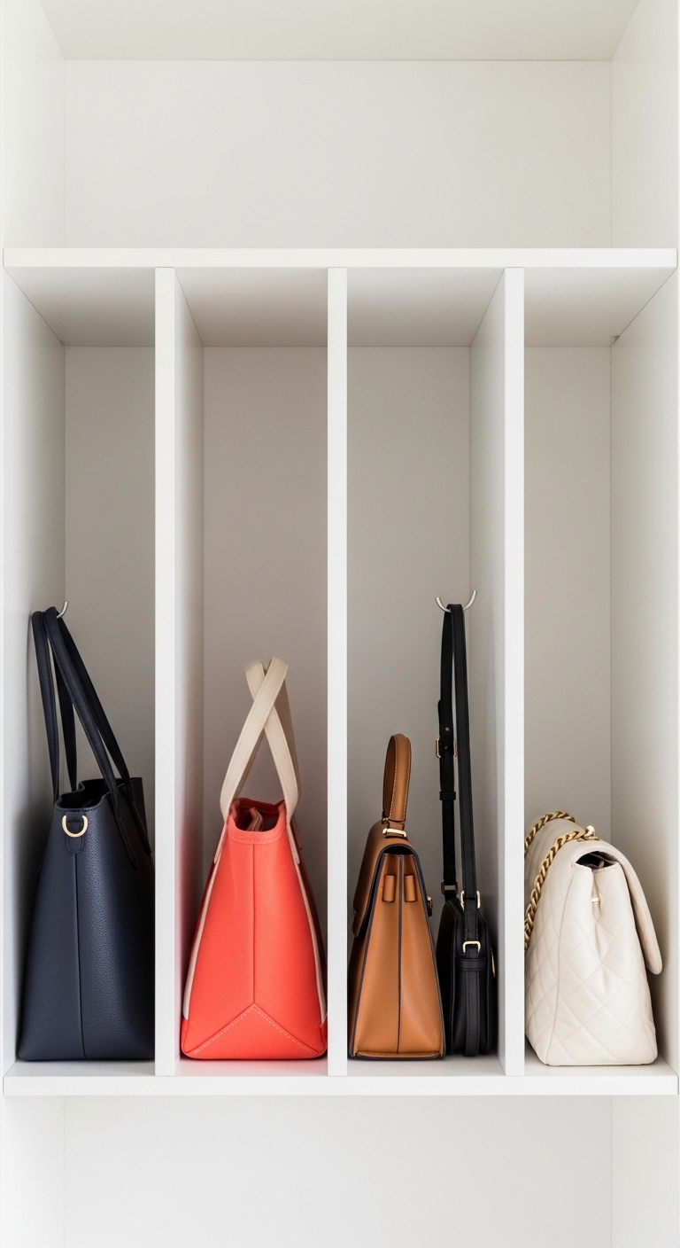 Idea 9: Use Vertical Dividers on Shelves to Organize Bags and Purses