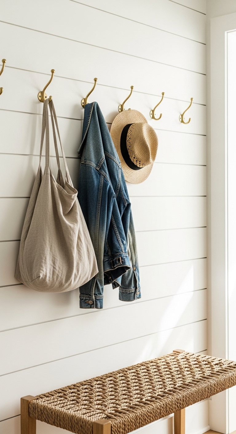 A hook rail does something no cabinet can — it makes your everyday items part of the decor. When your coat, your bag, your keys, and your dog’s leash are hung neatly on a beautiful row of hooks, they stop being clutter and start being visual texture.