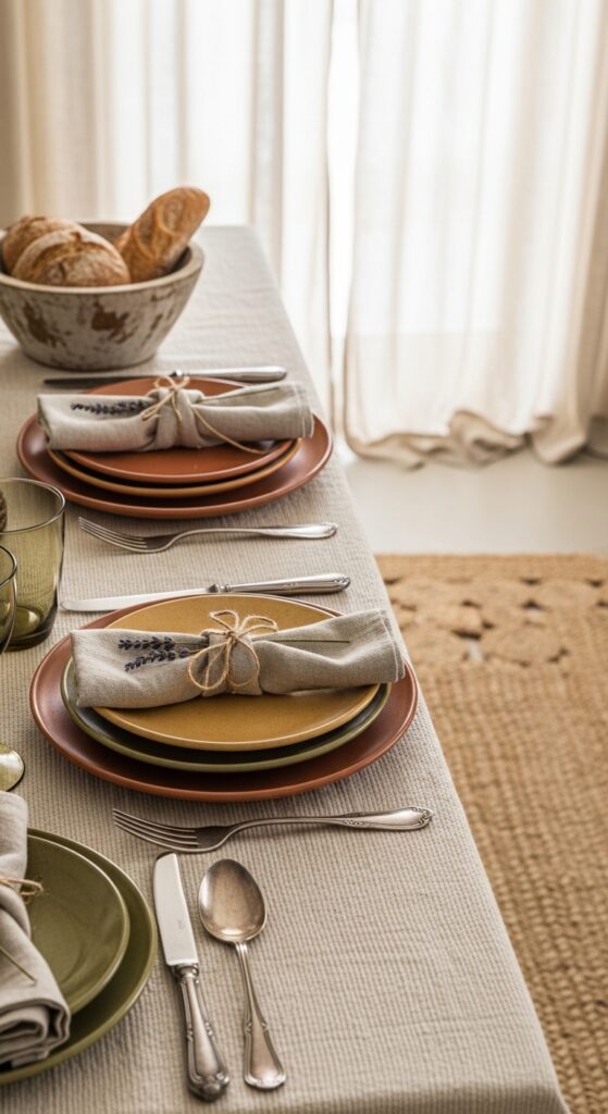 Idea 10: Layered Textiles — Linen Curtains, Table Runners, and Jute Rugs