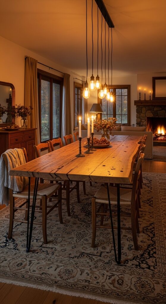 In your rustic dining room, textiles are what make the space feel touchable, livable, and warm. They soften the hard edges of wood and stone, absorb sound (which makes mealtimes feel more intimate), and add visual depth that you simply can’t get any other way.