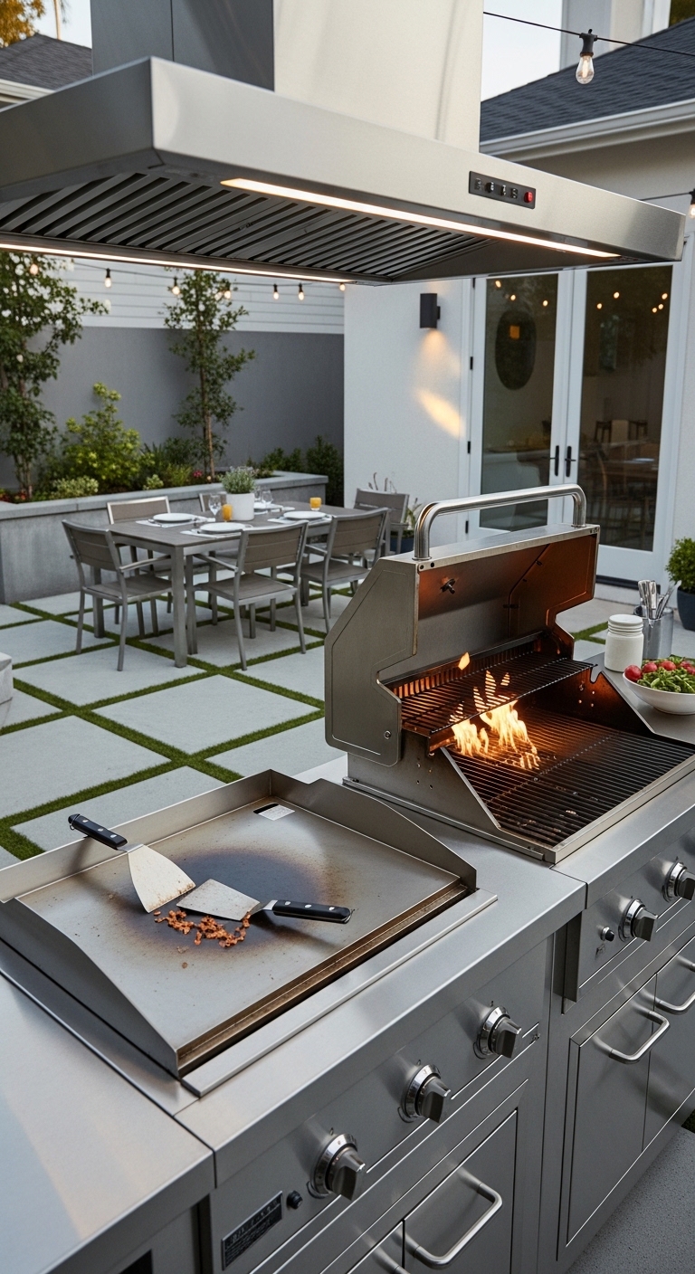 Pairing a compact flat-top griddle with a standard grill on a shared counter base gives you serious cooking versatility. Breakfast for the family on Saturday? Griddle. Sunday evening burgers? Grill. Dinner party with multiple proteins cooking at once? Both.