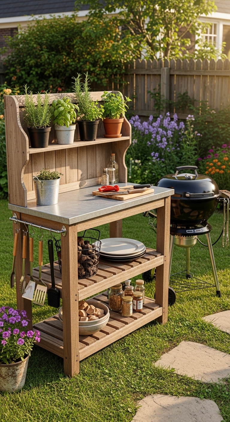 Buying or building a potting bench and repurposing it as your grill prep station is one of the cleverest small-budget ideas out there.