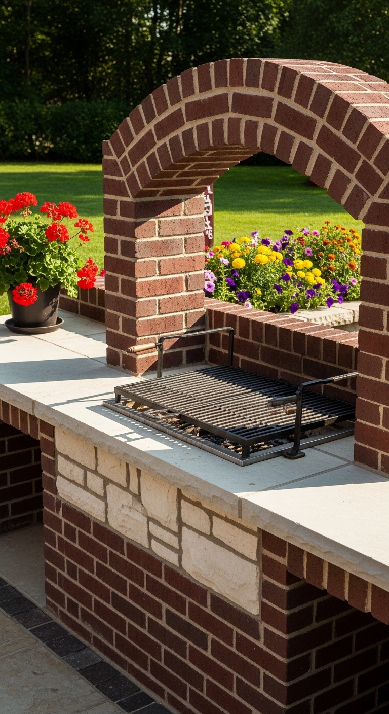 Even in a small yard, a compact brick station built against a wall or fence creates a real anchor point for the whole outdoor space.