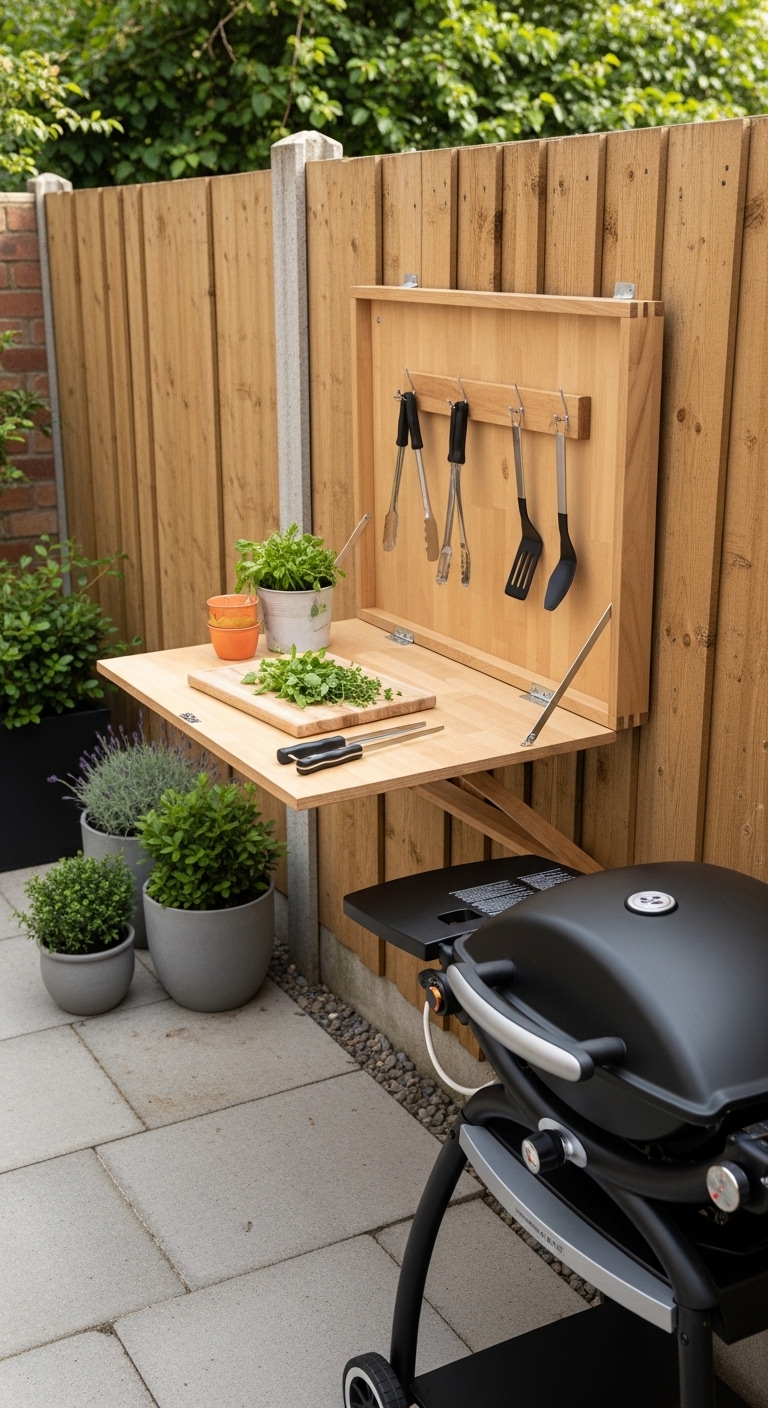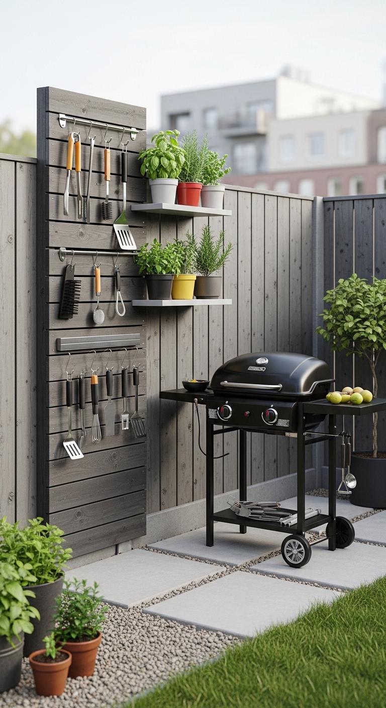 Idea 15: The Vertical Storage Wall + Compact Grill Setup
