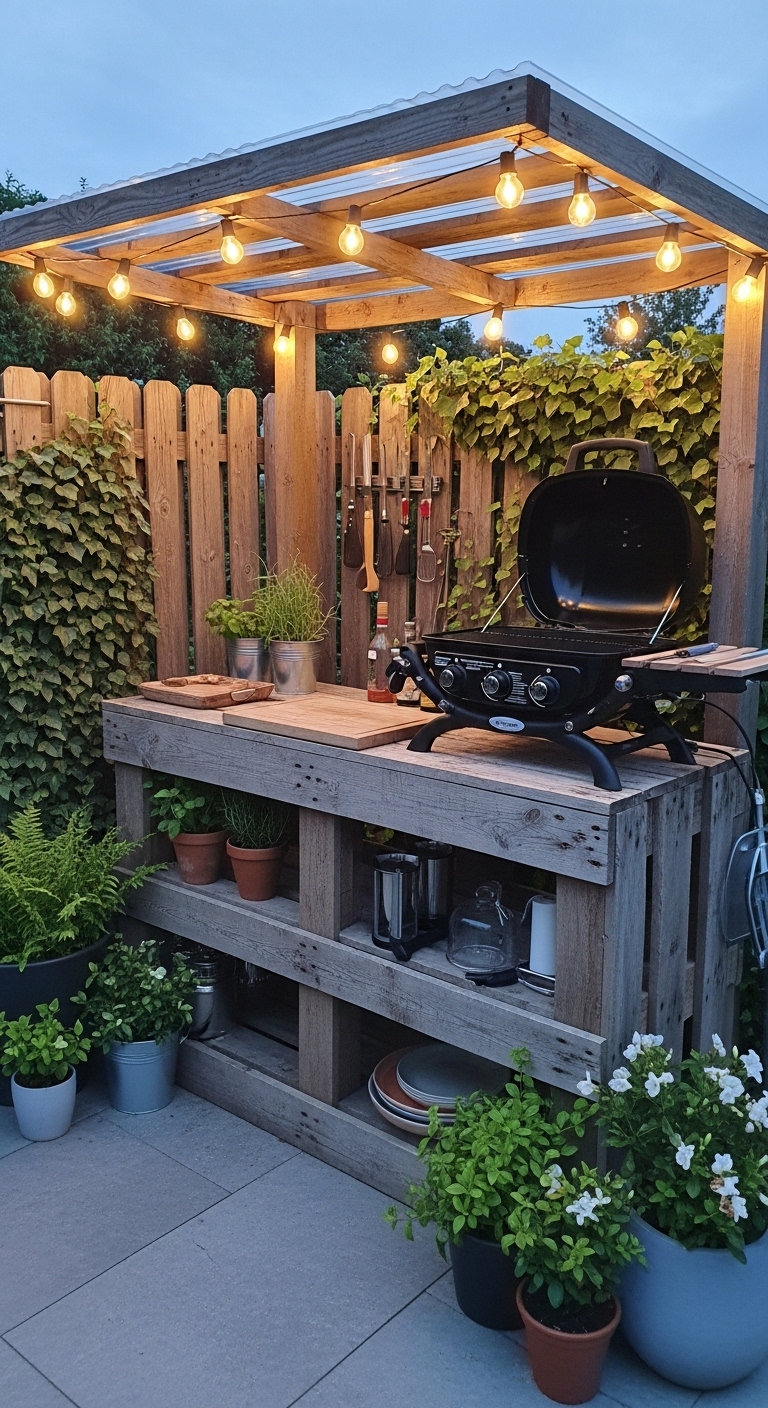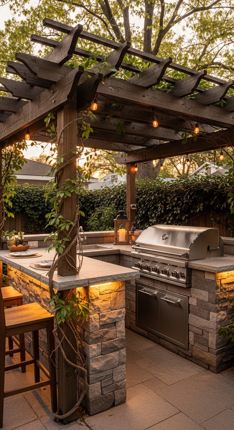 Shade and shelter change everything about outdoor cooking. When you combine a compact grill station with a small pergola overhead, you create something that feels like an actual outdoor room — even in a tiny yard.