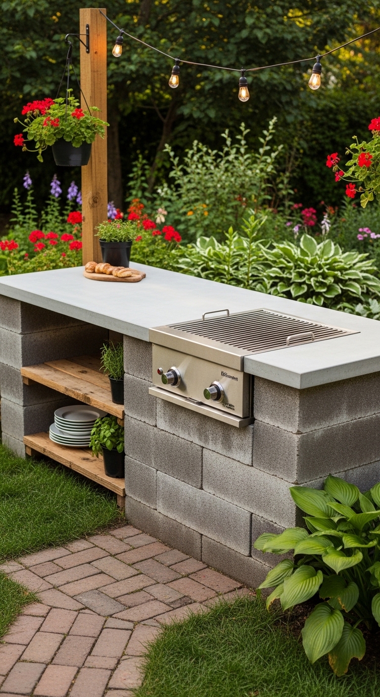 What makes cinder block ideal for small backyards is how customizable it is. You build it to exactly the dimensions your space allows — not a standard size that might be too big or too small. Want a 3-foot wide station? Build it 3 feet wide. Need to tuck it into a weird corner? Stack accordingly.
